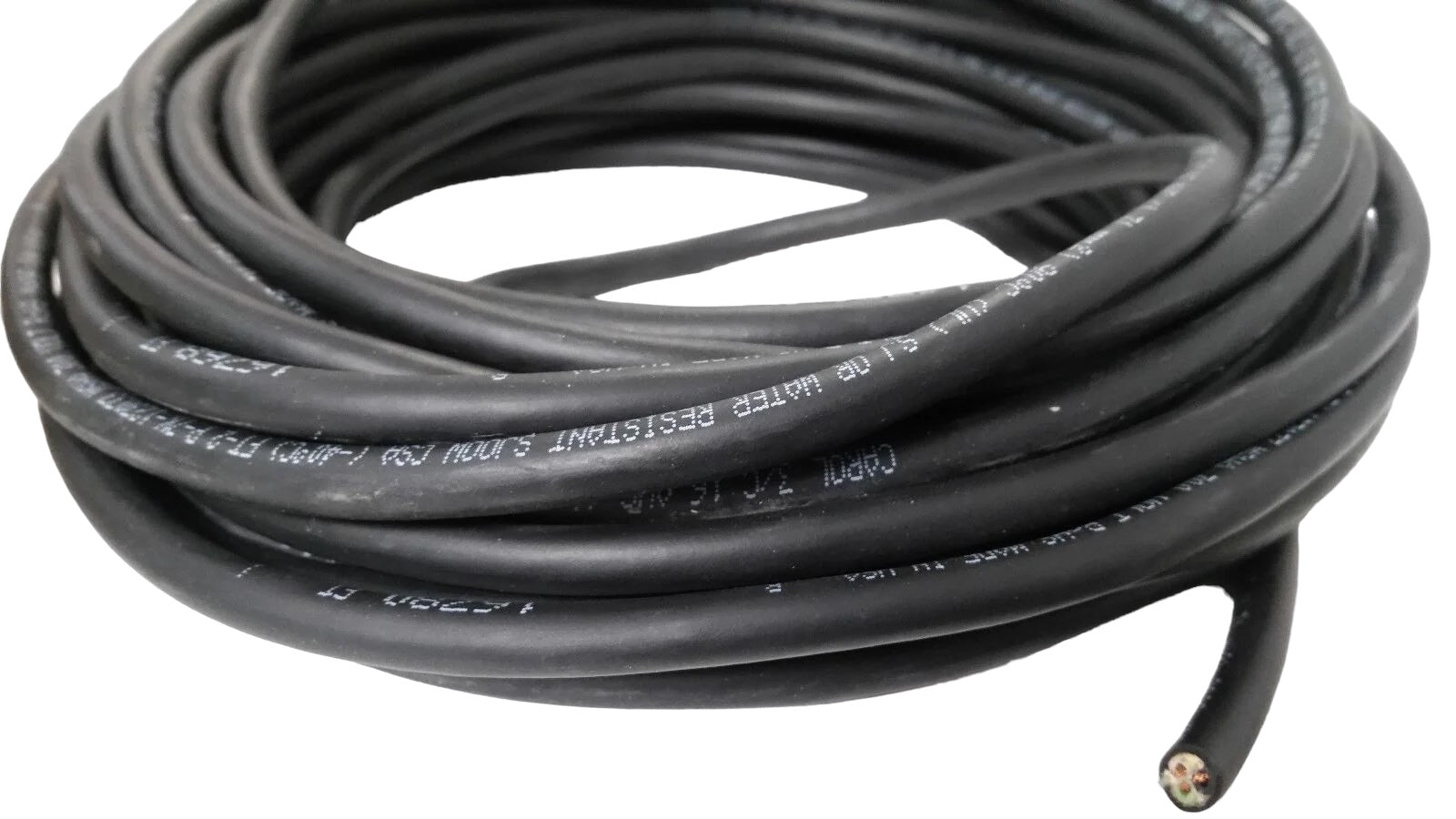 SJOOW/SJ JUNIOR SERVICE CORD WITH A EXTRA TOUGH JACKET MADE FOR USE WITH PORTABLE POWER TOOLS,SMALL MOTORS AND POWER EXTENSIONS.RATED FOR 300 VOLTS WITH A OIL RESISTANT  BLACK CPE JACKET AND IS WATER,OIL SUNLIGHT AND WEATHER RESISTANT AND CAN BE USED IN OUTDOOR ENVIRONMENTS. HAS A -40C TO +90C HEAT TEMPERATURE RATING AND IS P-136 MSHA,OSHA ACCEPTABLE (ROHS COMPLIANT) MADE IN THE USA.