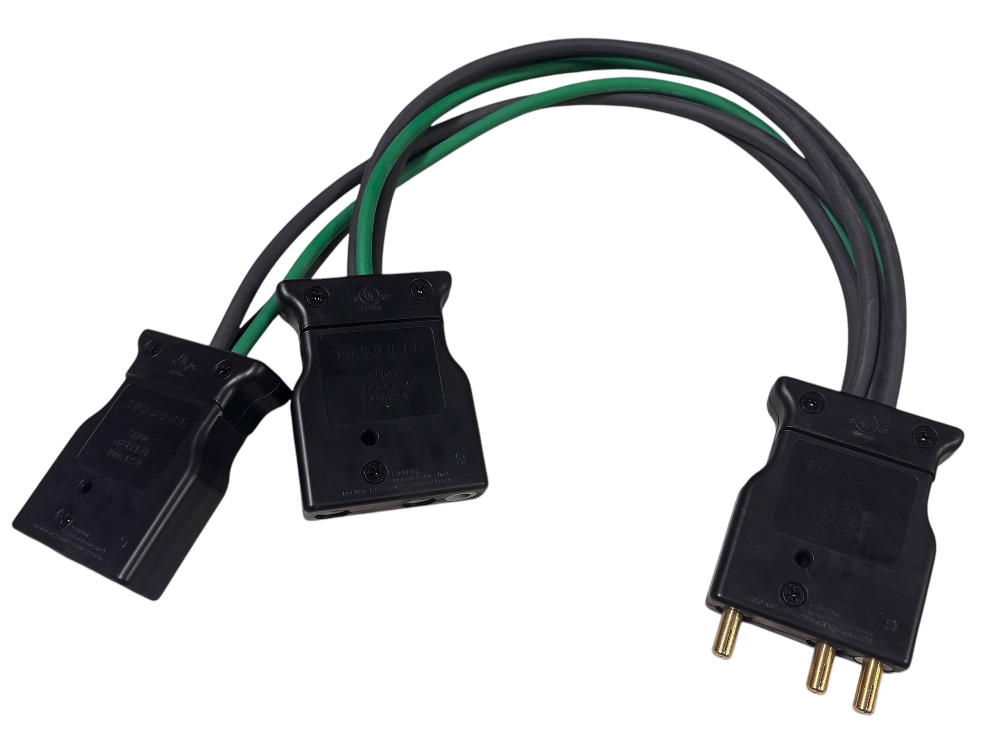 Stage Pin Splitter Assembly 100A Male (2) 100A Female Hubbell 100A/125V